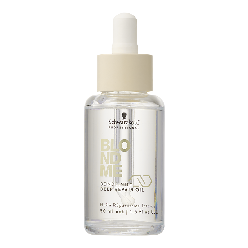 Дејство: BLONDMe Bondfinity Deep Repair маслото ја користи напредната Bondfinity технологија за длабински да ја обнови косата и да создаде отпорни, долготрајни врски. Проактивно го спречува кршењето и губењето на кератинот, „заклучувајќи“ го длабоко во структурата на влакното. Ова масло ја прави косата 7 пати посилна уште по првата употреба, ја измазнува порозната текстура и дава прекрасен сјај, сето тоа без да ја натежне. Дополнително, нуди заштита од топлина до 230°C и контрола на „фриз“ ефектот до 24 часа. Доколку се нанесе навечер, обезбедува длабинска регенерација во текот на ноќта за мазна коса наутро. Формулата не содржи состојки од животинско потекло.